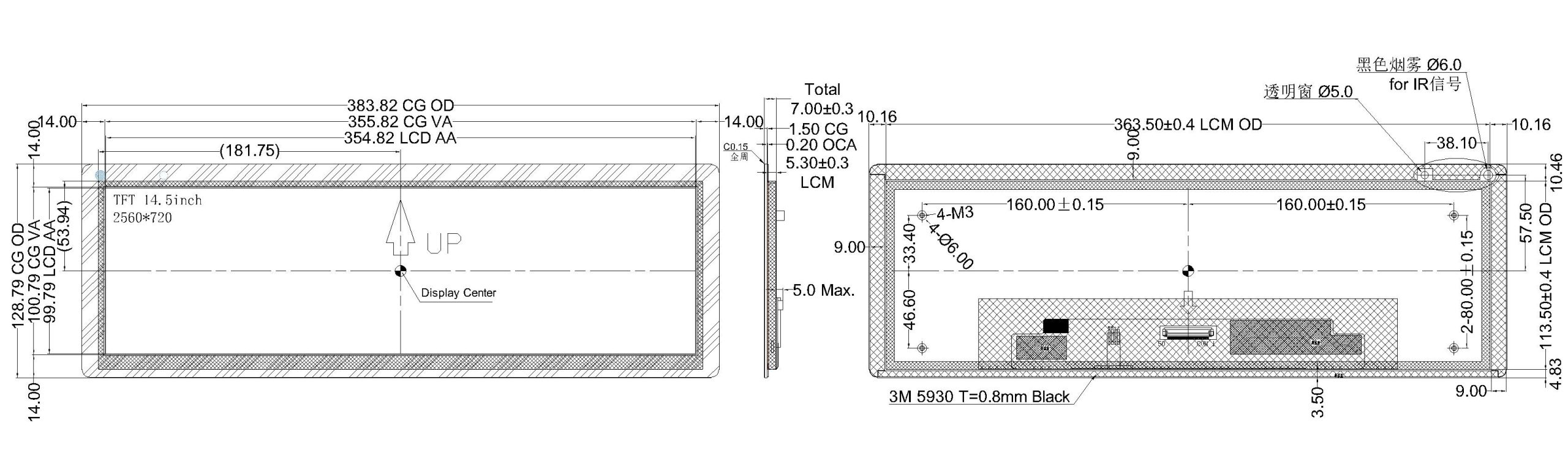 | LCM Dimension | 363.50 (W) × 113.5 (H) mm | mm |